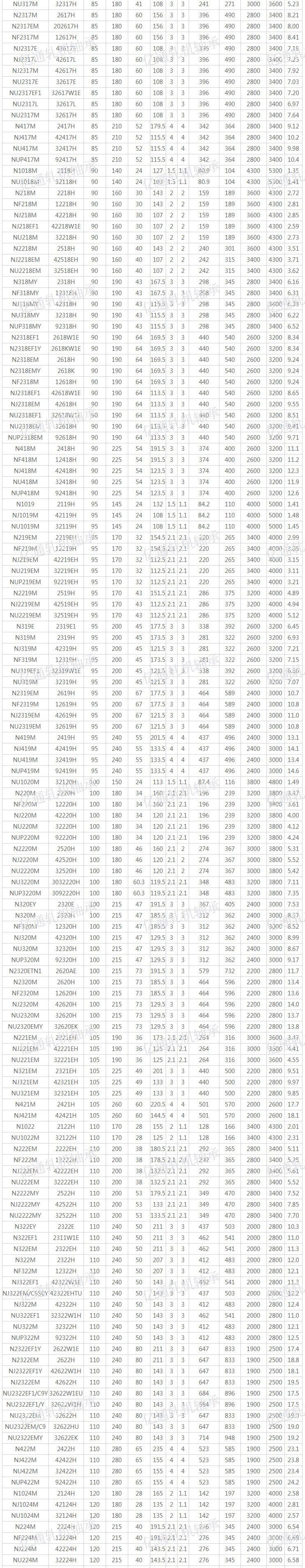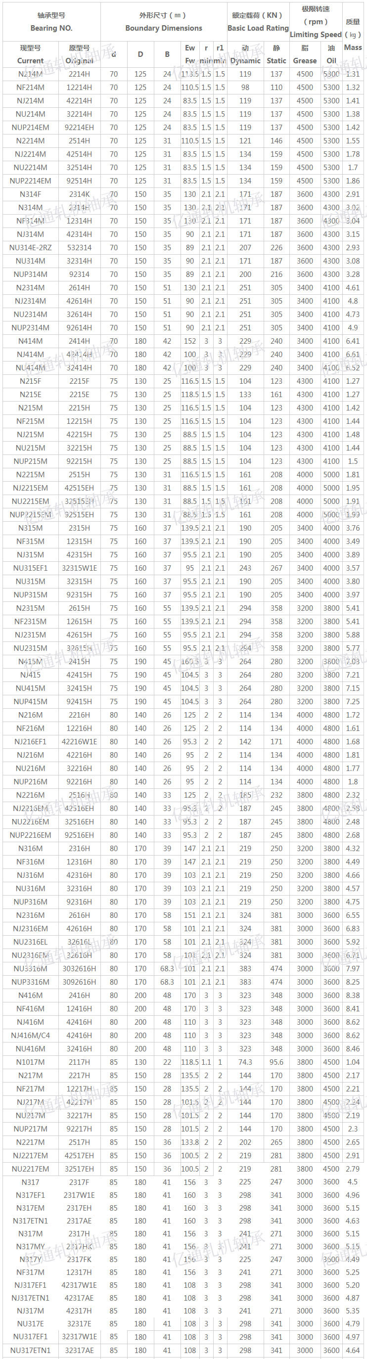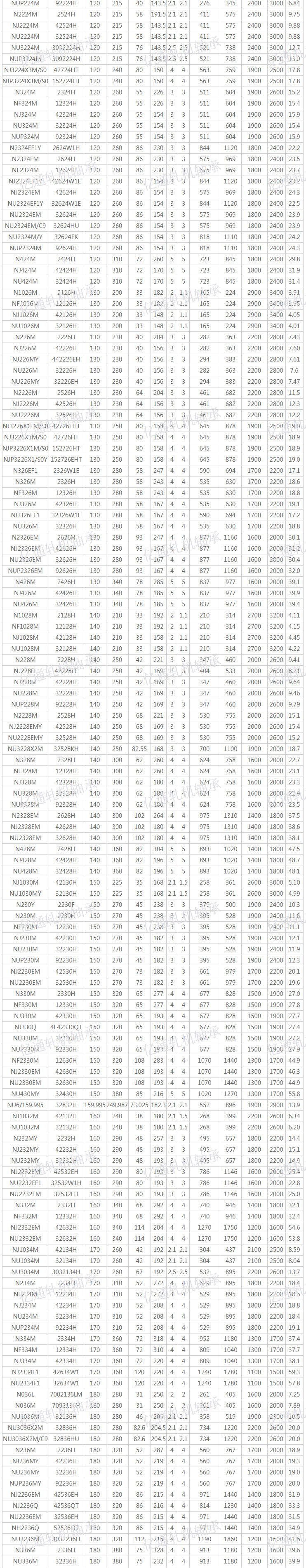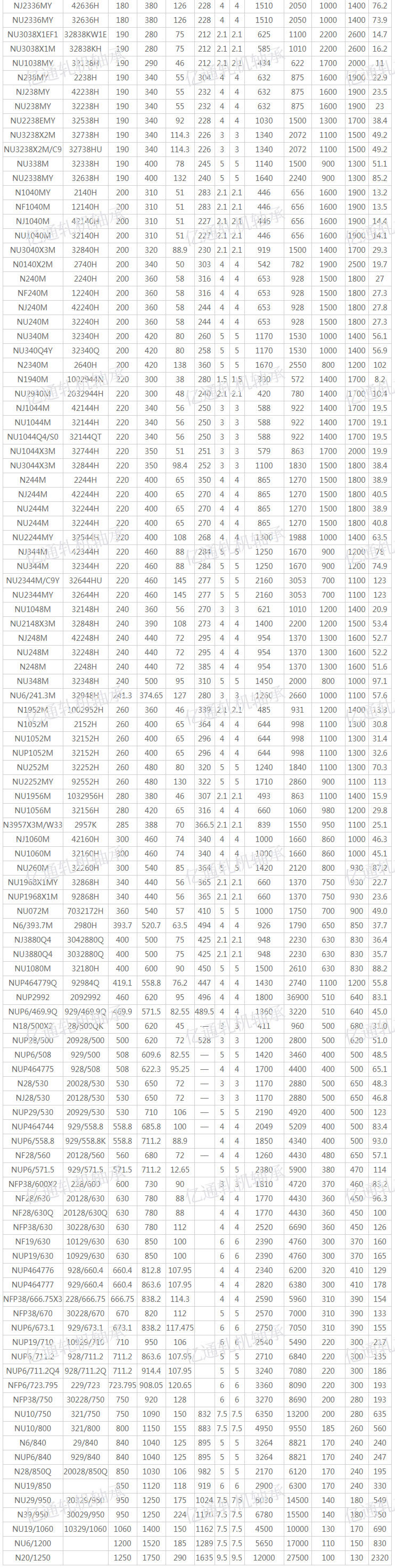 單列圓柱滾子軋機(jī)軸承參數(shù)