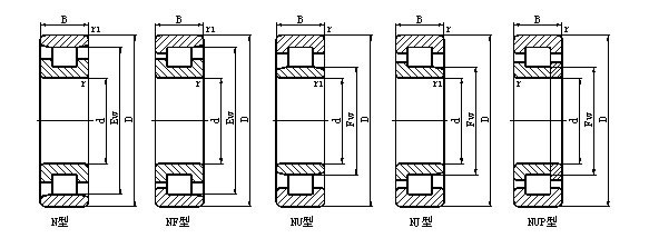 內(nèi)外圈均帶擋邊是NF型、NJ型可承受較小的單向軸向負(fù)荷,NUP型可承受較小的雙軸向負(fù)荷。