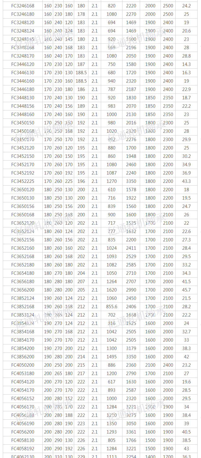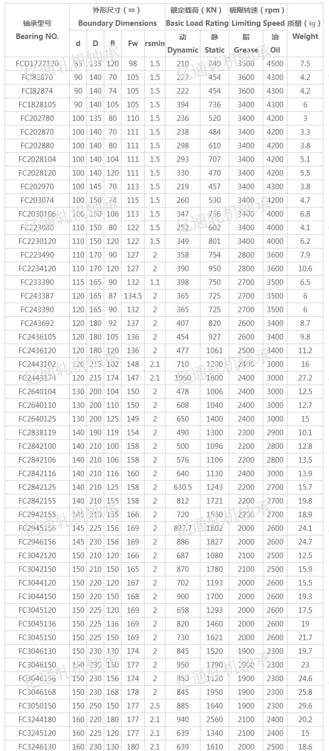 FC型—由兩個雙滾道外圈與一個單內圈、兩個梳狀保持架及若干滾動體組成。