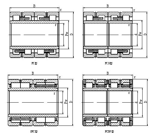 軋機用四列圓柱滾子軸承其結構主要有以下幾種基本型式。