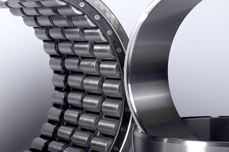 軋機用四列圓柱滾子軸承主要應用于冶金軋鋼機輥頸及其他重型機械,其徑向尺寸較小極限轉速較高,徑向承載能力高,但不能承受軸向負荷,所有軋機用四列圓柱滾子軸承都要與止推定位軸承配套使用,如深溝球軸承、角接觸球軸承、推力軸承、圓錐滾子軸承等。