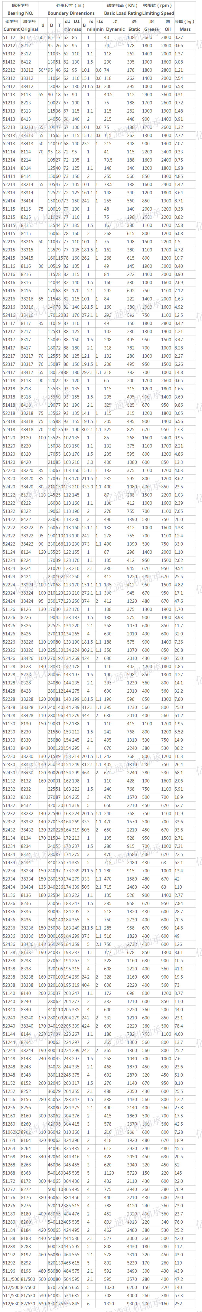推力球軋機軸承參數(shù)