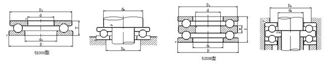 推力球軸承屬于分離型軸承,接觸角為90°,由鋼球(帶保持架)、軸圈(與軸緊配合)和座圈組成,鋼球在軸圈和座圈之間旋轉(zhuǎn)。只能承受軸向載荷,不能承受徑向載荷。由于軸向載荷是均勻地分布在每個鋼球上,故載荷能力較大;但工作時,溫升較大,允許極限轉(zhuǎn)速較低。 推力球軸承不能限制軸或外殼的徑向移動,但可限制軸和外殼的軸向移動,因此,此類軸承在軋鋼機上通常作為軋輥的軸向定位使用。